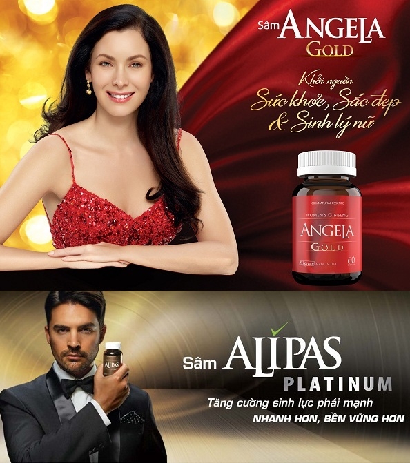 Như LIC được đặc trưng bởi màu tím, Angela lại được nhận diện bởi màu đỏ và hình ảnh cô hoa hậu hoàn vũ, còn ALIPAS là màu nâu thể hiện sự sang trọng, quyền lực của 1 sản phẩm Sinh lý nam